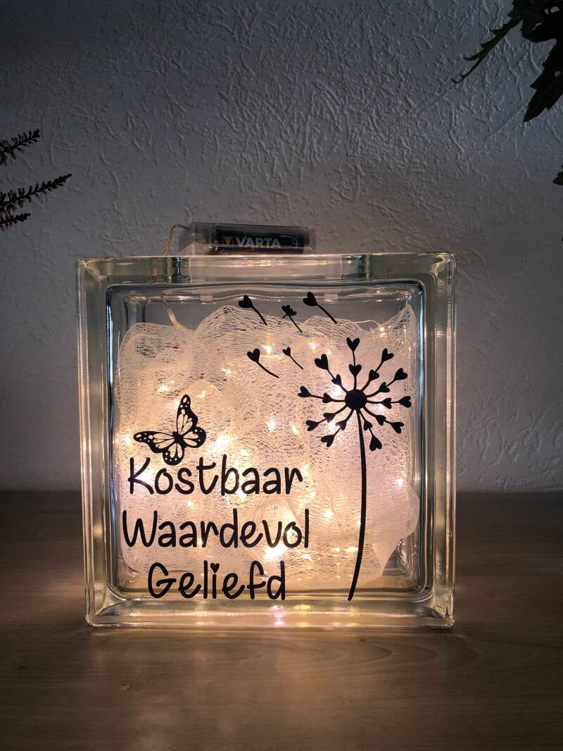 Led lampje met geboorte gegevens of tekst op plexiglas